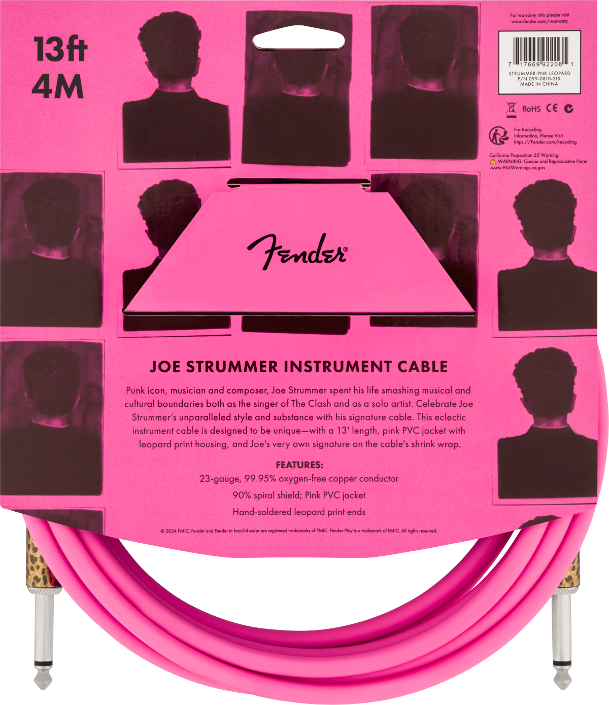 Punk icon, musician and composer, Joe Strummer spent his life smashing musical and cultural boundaries both as the singer of The Clash and as a solo artist. Celebrate Joe Strummer’s unparalleled style and substance with his signature cable. This eclectic instrument cable is designed to be unique -- with a 13' length, pink PVC jacket with leopard print housing, and Joe's very own signature on the cable's shrink wrap.