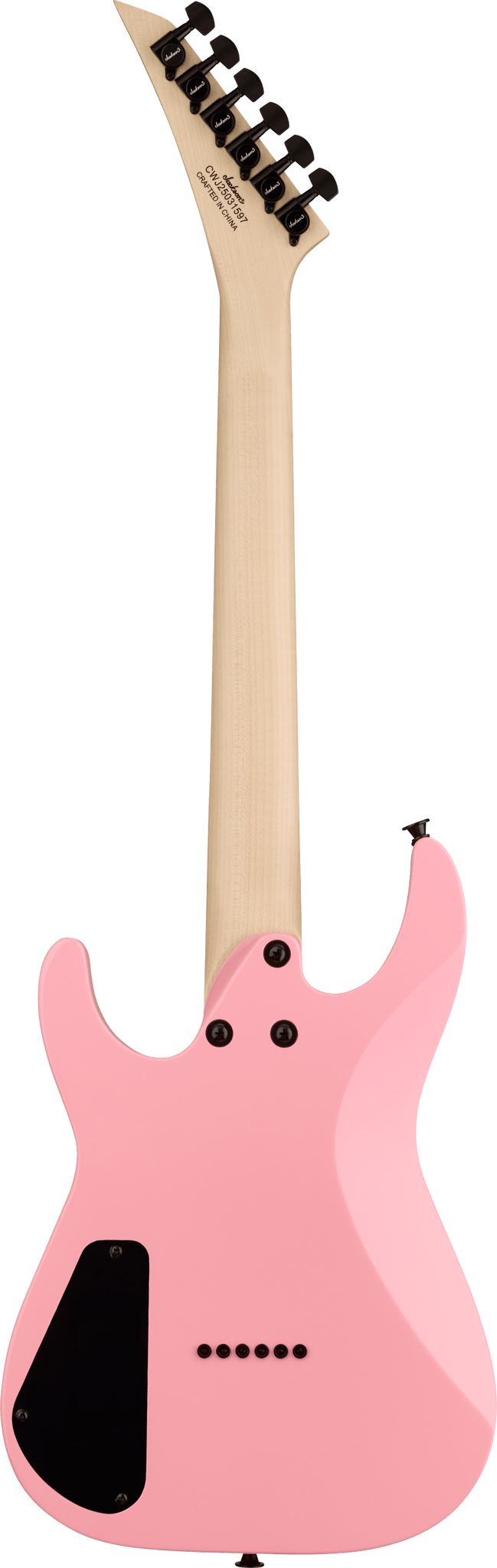 A pair of Jackson high-output humbucking pickups with ceramic magnets crank out clear tone with plenty of girth. The neck position delivers bright highs while the bridge adds plenty of crunchy distortion. Its versatile voice can be shaped with a three-way toggle switch and single volume and tone controls, while a string-through-body hardtail bridge with block saddles improves intonation and sustain.