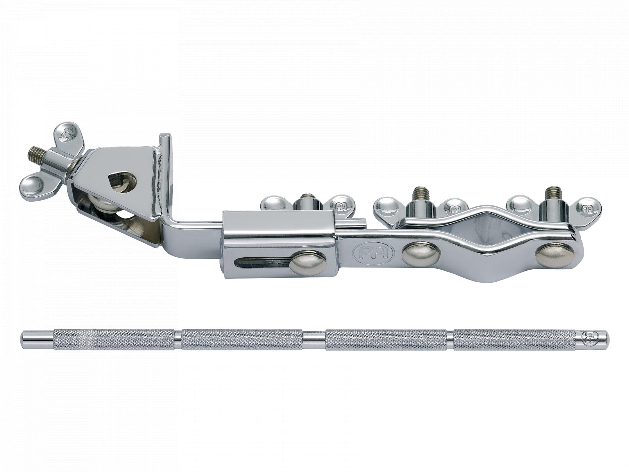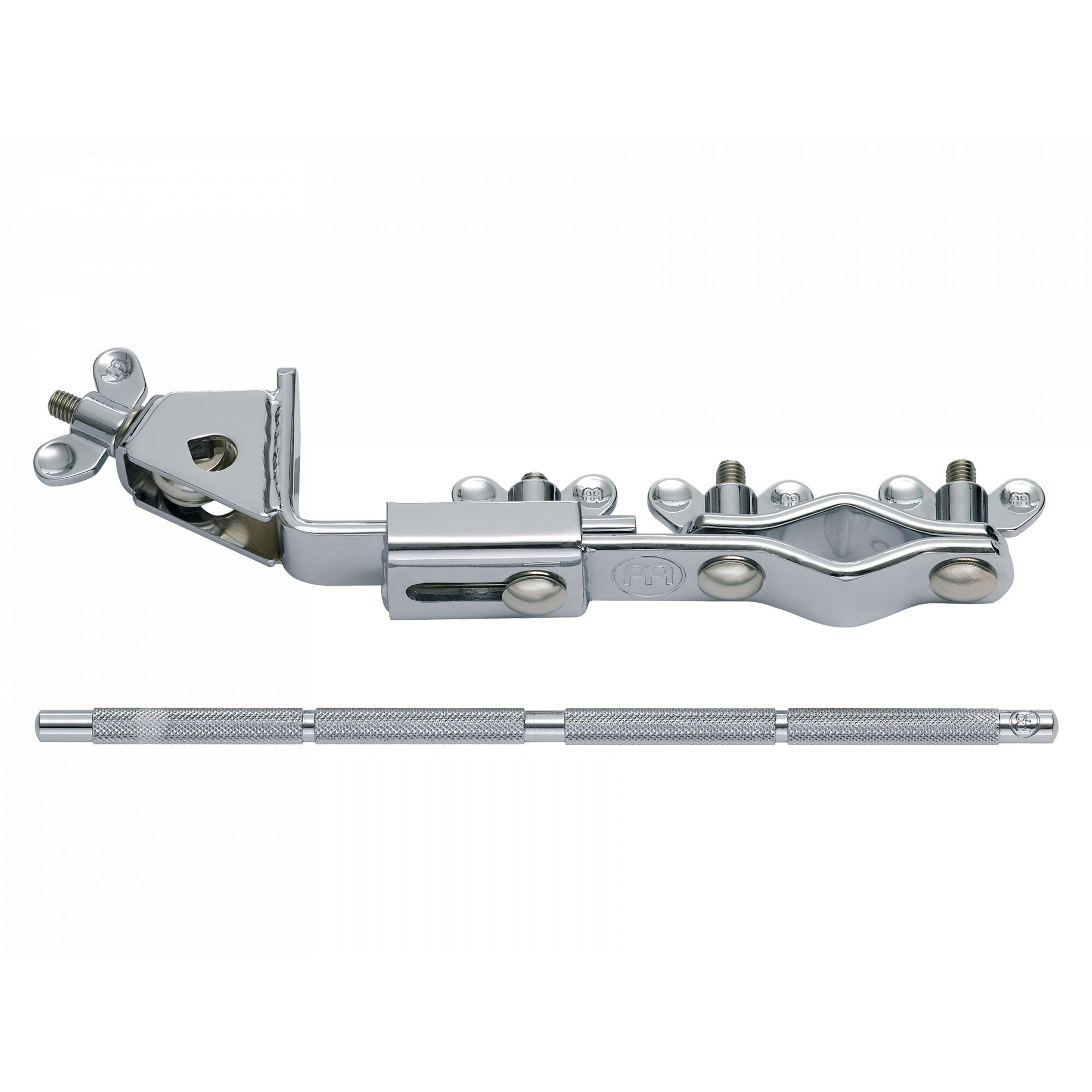The MEINL Multi Clamp easily attaches to any common stand. Its unique feature is the length adjustability to fit any given space situation. It holds one rod.