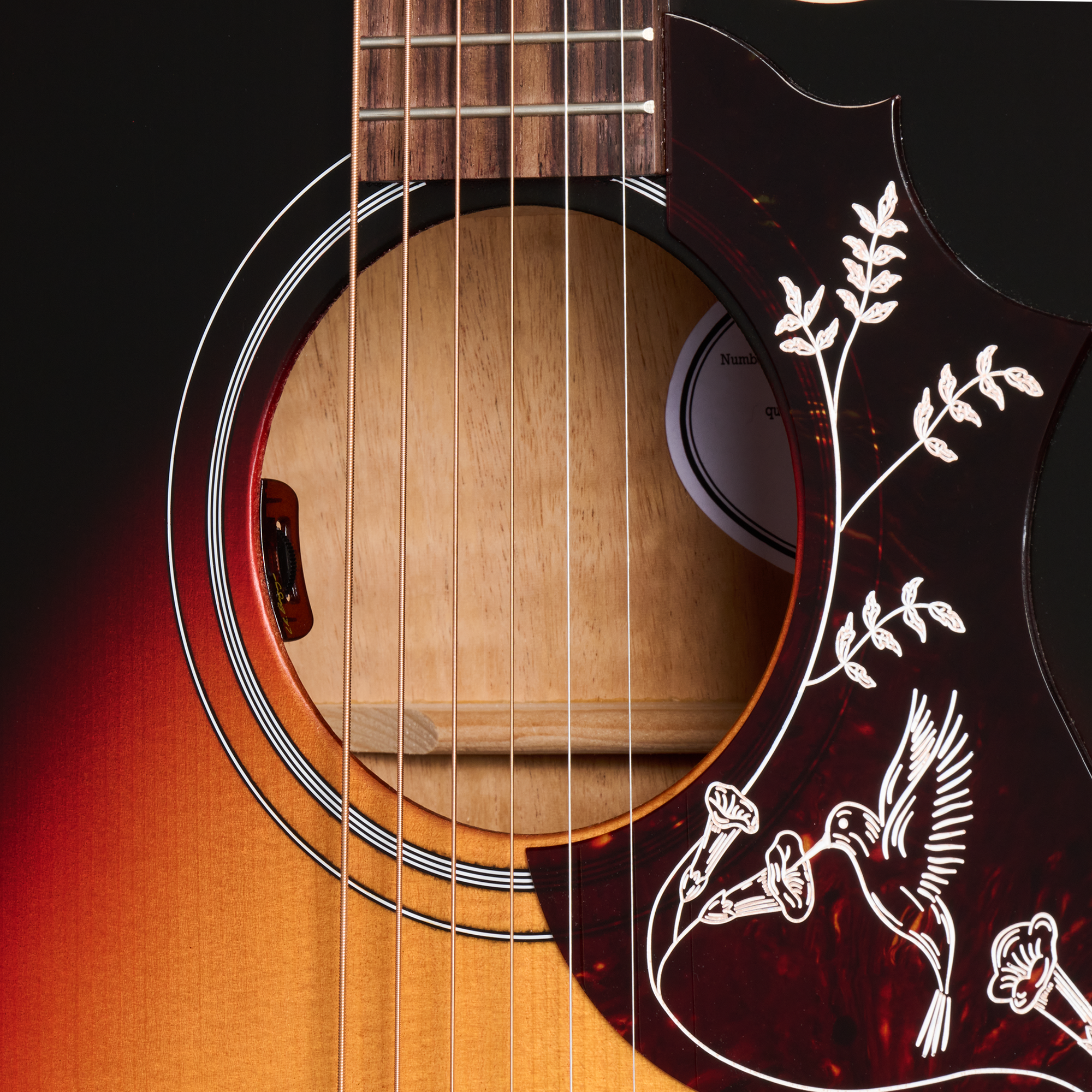 The pickguard features one-colour Hummingbird Studio graphics, and the satin nitrocellulose finish gives the Hummingbird Studio EC the look and feel of a long-treasured musical companion. An L.R. baggs™ Element Bronze active under-saddle piezo pickup ensures easy studio-quality plug-and-play anywhere, while the included hardshell case helps keep this 'bird safe wherever your travels take you.